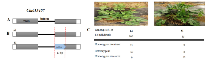 Figure 2 Genetic mapping of the short internode gene and candidate gene analysis in watermelon