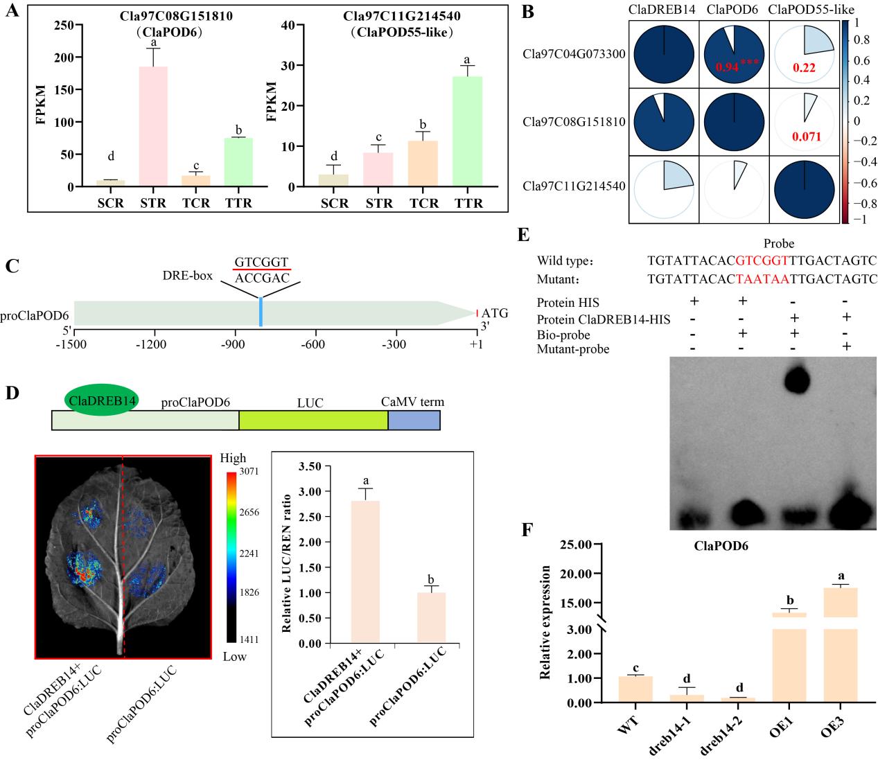 Figure: Regulatory relationship between ClaDREB14 and target gene ClaPOD6