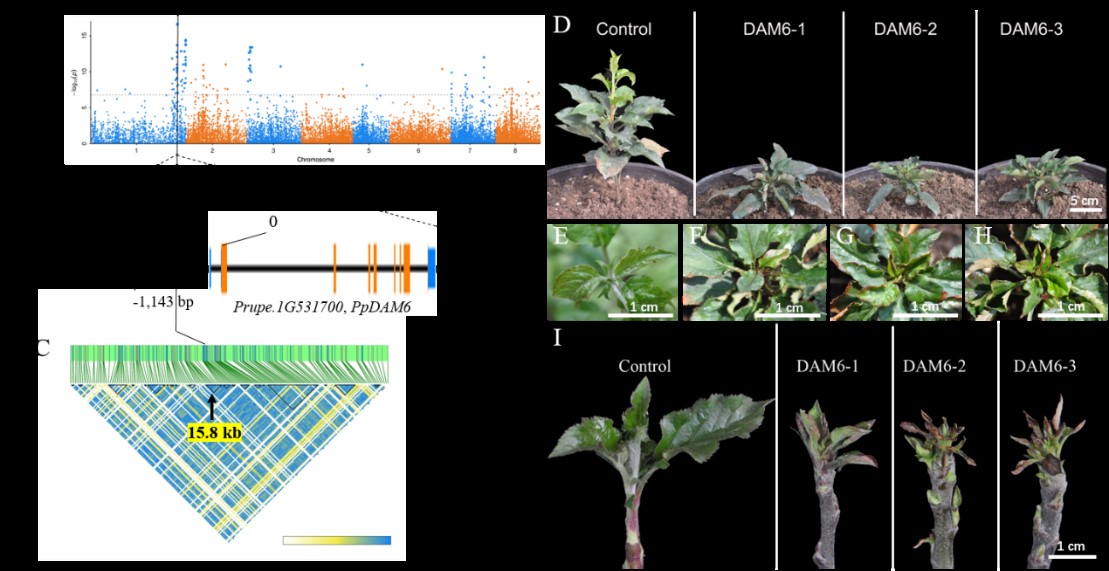 Recently, the Peach Resource and Breeding Group of Zhengzhou Fruit Research Institute, Chinese Academy of Agricultural Sciences (CAAS) has identified a key gene, PpDAM6 , controlling peach chilling requirement (CR) by genome-wide association analysis based on structural variations (SVs), and developed a low CR breeding marker based on this gene. CR is an important agronomic trait of peach, and low CR is the core scientific problem for the development of peach industry in southern China. The results of this study provide a guarantee for molecular breeding of low CR. The result was published on May 22 in Plant Physiology. Genome-wide association study (GWAS) and expression analysis of key ...