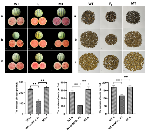 Recently, the watermelon genetic breeding and cultivation team of Zhengzhou Fruit Research Institute and the watermelon breeding team of Vegetable Research Institute of Beijing Academy of Agriculture and Forestry Sciences published a paper entitled "Identification of allelic relationship and translocation region among chromosomal translocation lines that leads to less-seed watermelon" in Horticulture Research. In this study, the translocation region leading to less seeds among chromosomal translocation lines was accurately identified, the genetic mechanism of the chromosomal translocation lines with few seeds was revealed, the molecular markers for the detection of translocation chromosom...
