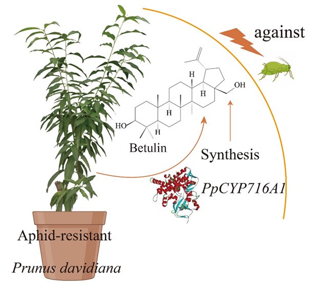 Recently,the innovation group of peach resources and breeding made an important progress in the research on the mechanism of peach defense against aphids. A novel natural active ingredient, betulin, for peach against aphids was found.The discovery provides important support for the development of plant-derived green pesticides and the breeding of peach aphid-resistant varieties. The relevant research results were published in the Journal of Agricultural and Food Chemistry, and also obtaineda national invention patent. The peach aphid, Myzuspersicae(Sülzer), is among the most devastating sap-feeding pests globally. Unfortunately, peach aphid, by ingesting phloem saps, excreting honeydew, and...