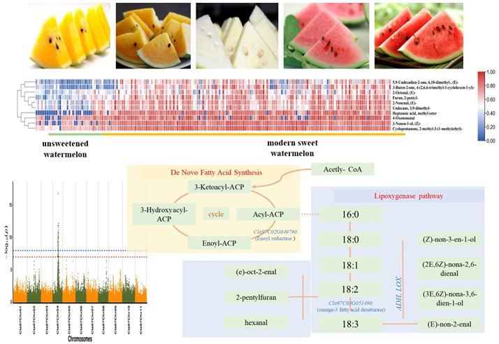 Recently, the Watermelon Genetic Breeding and Cultivation innovation team of Zhengzhou Fruit Research Institute published a paper entitled " Multi-omics integration to explore the molecular insight into the volatile organic compounds in watermelon " in Food Research International.In this paper, the accumulation pattern of volatile organic compounds and the molecular basis of genetic variation in watermelon fruit were systematically studied, which laid the foundation for the improvement of watermelon flavor quality. Fruit quality has always been a hot topic in horticultural crop research. This team constructed the first watermelon fruit metabolome database and analyzed the domestication sequ...