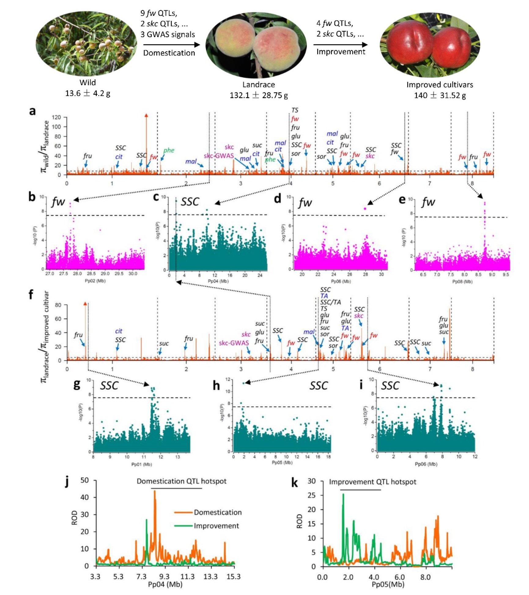 Recently, Prof. Wang Lirong from Zhengzhou Fruit Research Institute (ZFRI) has published their new findings in peach genome structure variation field in Genome Biology . Genome structural variations (SVs) have been associated with key traits in a wide range of agronomically important species; however, SV profiles of peach and their functional impacts remain largely unexplored. In this study, the researchers present an integrated map of 202,273 SVs from 336 peach genomes. A substantial number of SVs have been selected during peach domestication and improvement, which together affect 2,268 genes. Genome-wide association studies of 26 agronomic traits using these SVs identify a number of cand...