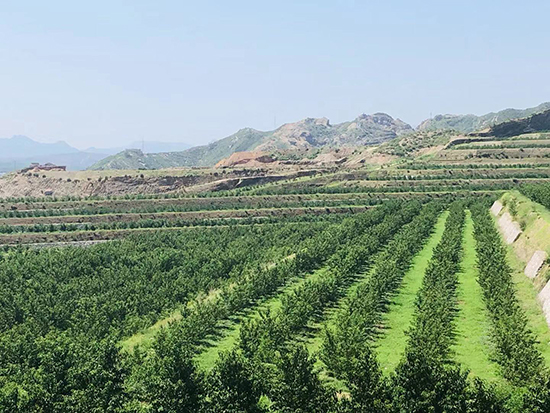 该基地采用宽行密植、行间生草、小角度高冠整形技术,克服了传统自然开心形光照不良、行间通道不明显、树体郁闭、田间劳作不便、无法机械化等问题,树体结构良好、通风透光、便于机械化、优质果率高,该模式在刘县长等科技专家的示范带动下已全面推广至阜平全境。