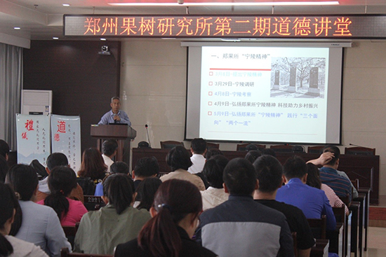 5月23日,郑州果树研究所举办深入学习郑果所“宁陵精神”主题道德讲堂。进一步学习贯彻习近平总书记贺信精神,弘扬郑州果树研究所几代科学家呕心沥血形成的“不忘初心、扎根沙地、攻坚克难、造福百姓”的“宁陵精神”,激励广大科研人员面向世界农业科技前沿、面向国家重大需求、面向现代农业建设主战场,为果树瓜类产业发展,做出更大贡献。