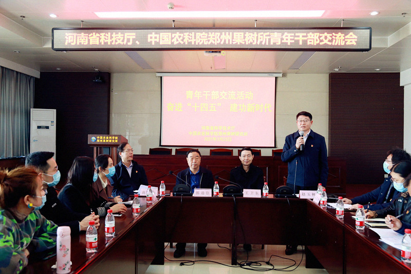 3月23日,为深化党史学习教育,落实河南省科技厅党组关于青年工作的总体部署,河南省科技厅和中国农业科学院郑州果树研究所联合举办“奋进‘十四五’建功新时代”青年干部交流活动。旨在以学习党史为载体,通过深入交流,提升青年干部的党性修养,增强业务能力,以优异成绩向党的100周年生日献礼。河南省科技厅副厅长郭遂臣,二级巡视员、机关党委专职副书记王卫东,郑果所党委书记赵玉林以及两个单位的60余名青年干部参加活动,郑果所党委副书记髙养杰主持会议。
