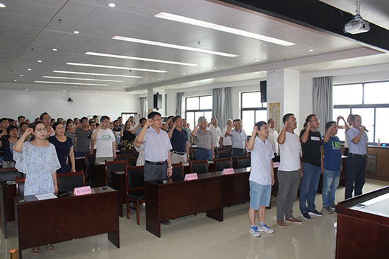 大会在雄壮的国歌声中拉开帷幕,方金豹带领预备党员面对党旗宣誓,全体党员重温了入党誓词。通过重温入党誓词,提醒党员干部不忘自己对党的铮铮誓言,进一步明晰党员责任与义务,激发党员的自豪感和荣誉感。