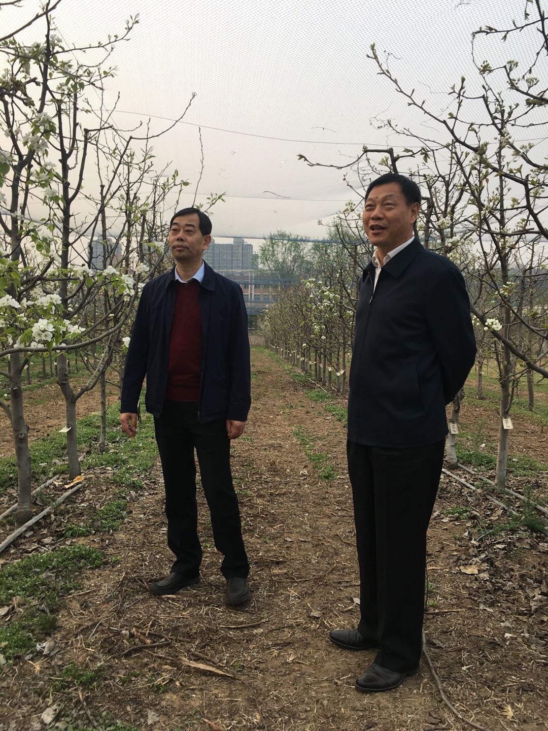 陪同调研的有农业农村厅科教处处长胡若哲。座谈结束后,调研组一行参观了国家葡萄、桃资源圃和梨示范园。